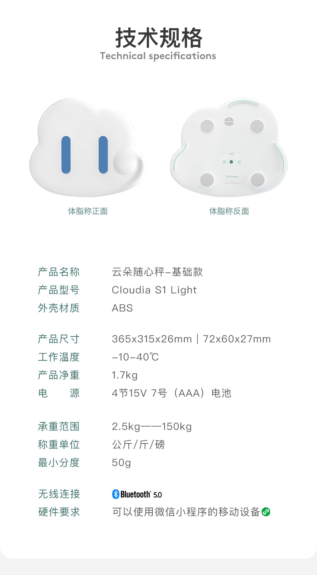 o!sheepps/羊哎云朵随心秤高颜值智能体脂秤体重秤健康秤osheepps