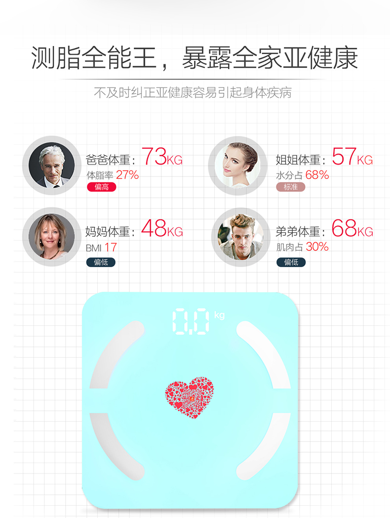 斯诺德体脂称健康秤成人电子秤人体秤测脂瘦身承重减肥智能
