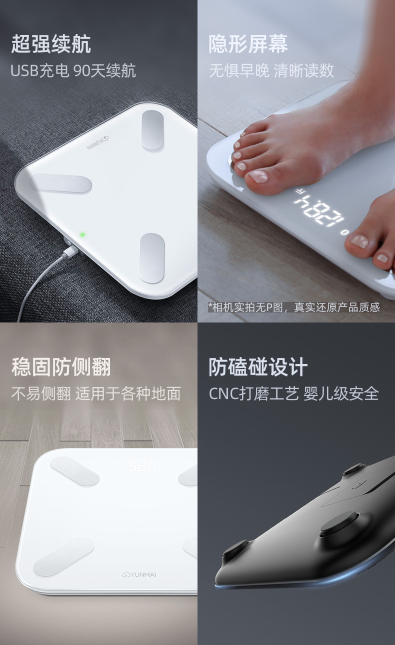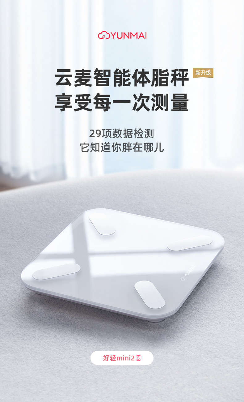 云麦好轻mini2智能体脂秤专业精准家用体重秤usb充电款人体秤测脂肪电子秤女生体脂称减肥体质秤健康秤yunmai